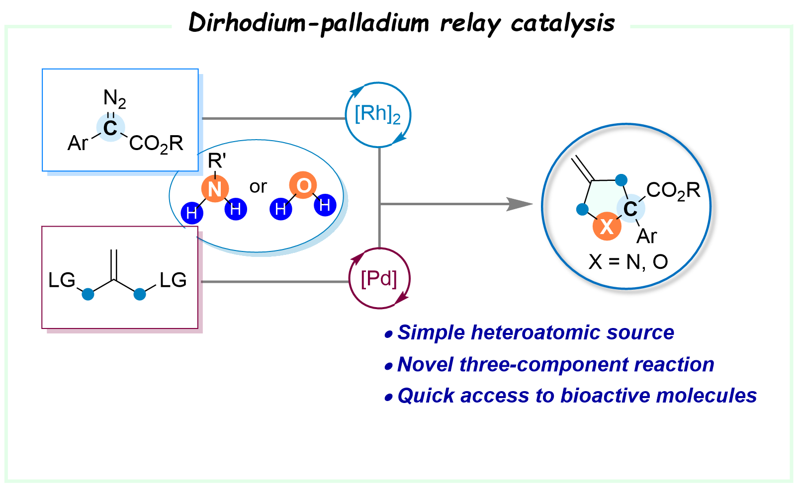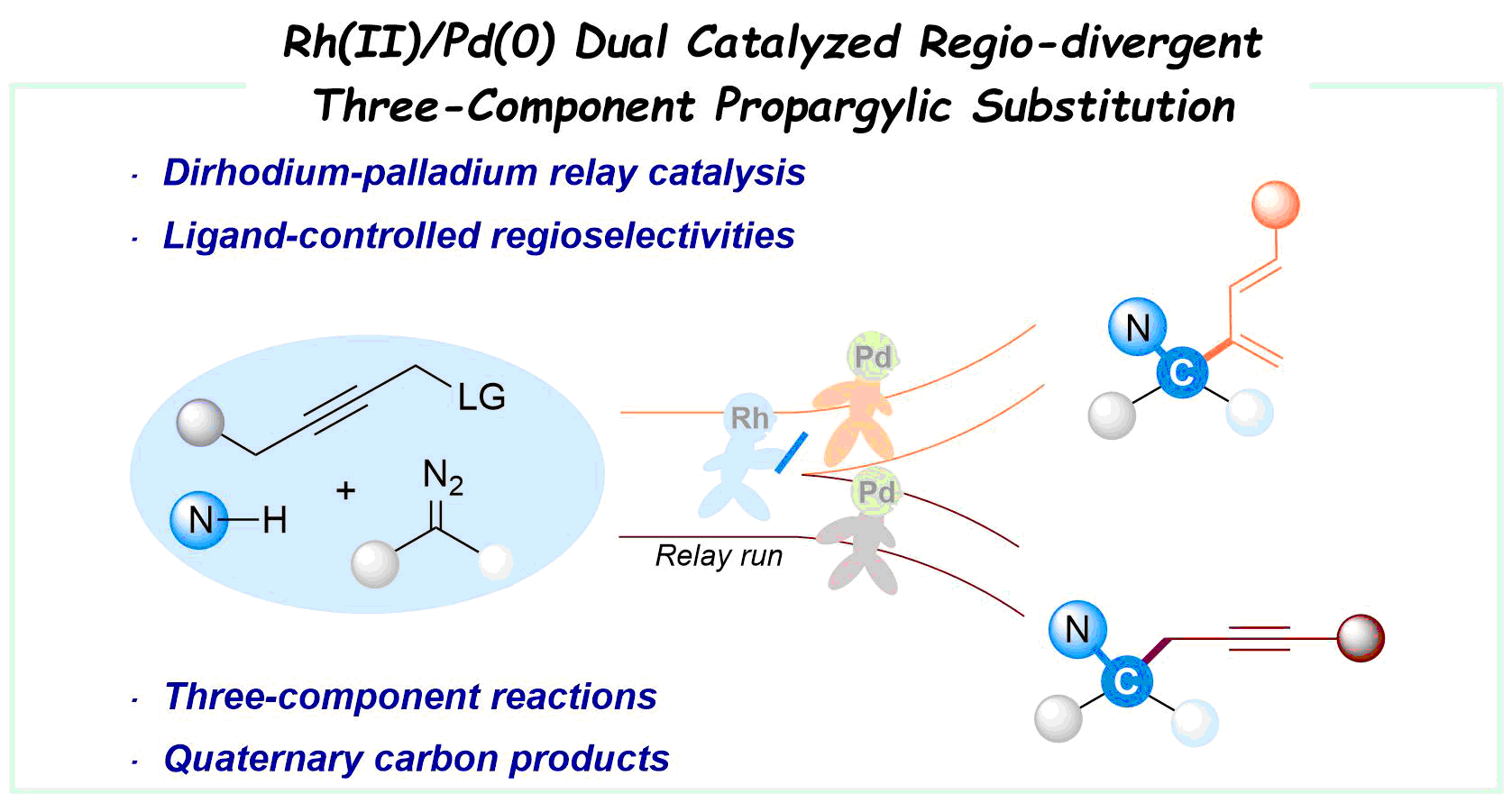 28. Xu, J.; Ge, Z.; Ding, K.; Wang, X.*, JACS Au, 2023, 3, 2862–2872. Rh(II)/Pd(0) Dual-Catalyzed Regio-Divergent Three-Component Propargylic Substitution.
