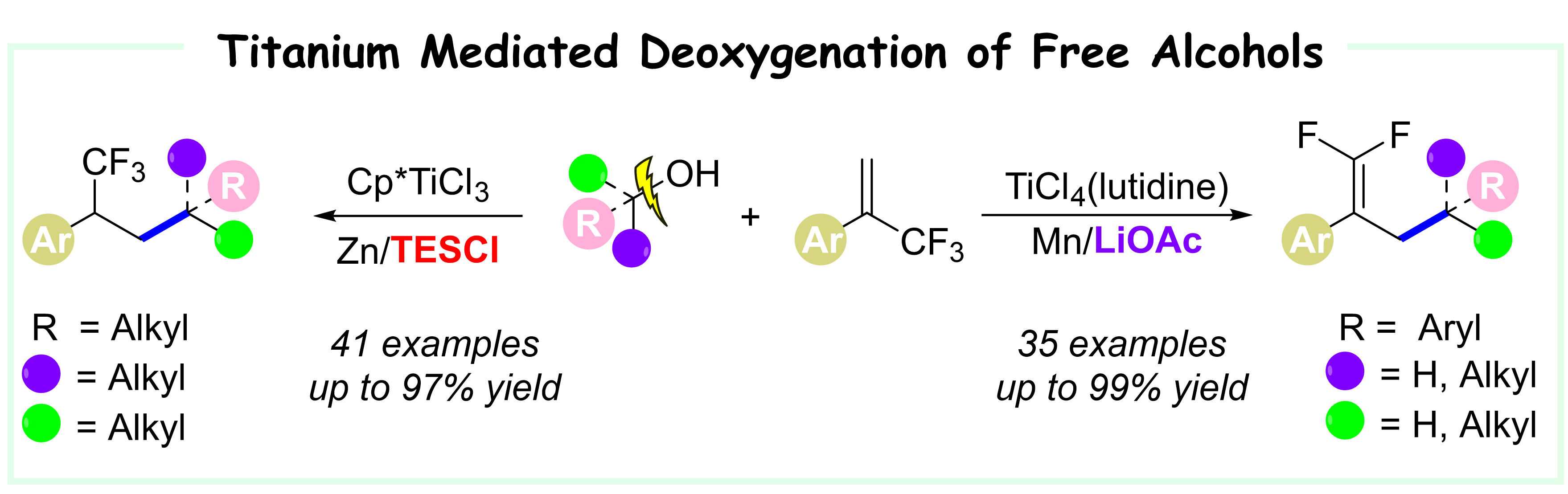 23. Tian, H.; Zhang, R.; Shi, L.; Zhao, C.*; Wang, X.*, Chin. J. Chem. 2023, 41, 1783-1790. Divergent Synthesis of Organofluorinated Molecules from Titanium Mediated Deoxygenation of Free Alcohols.
