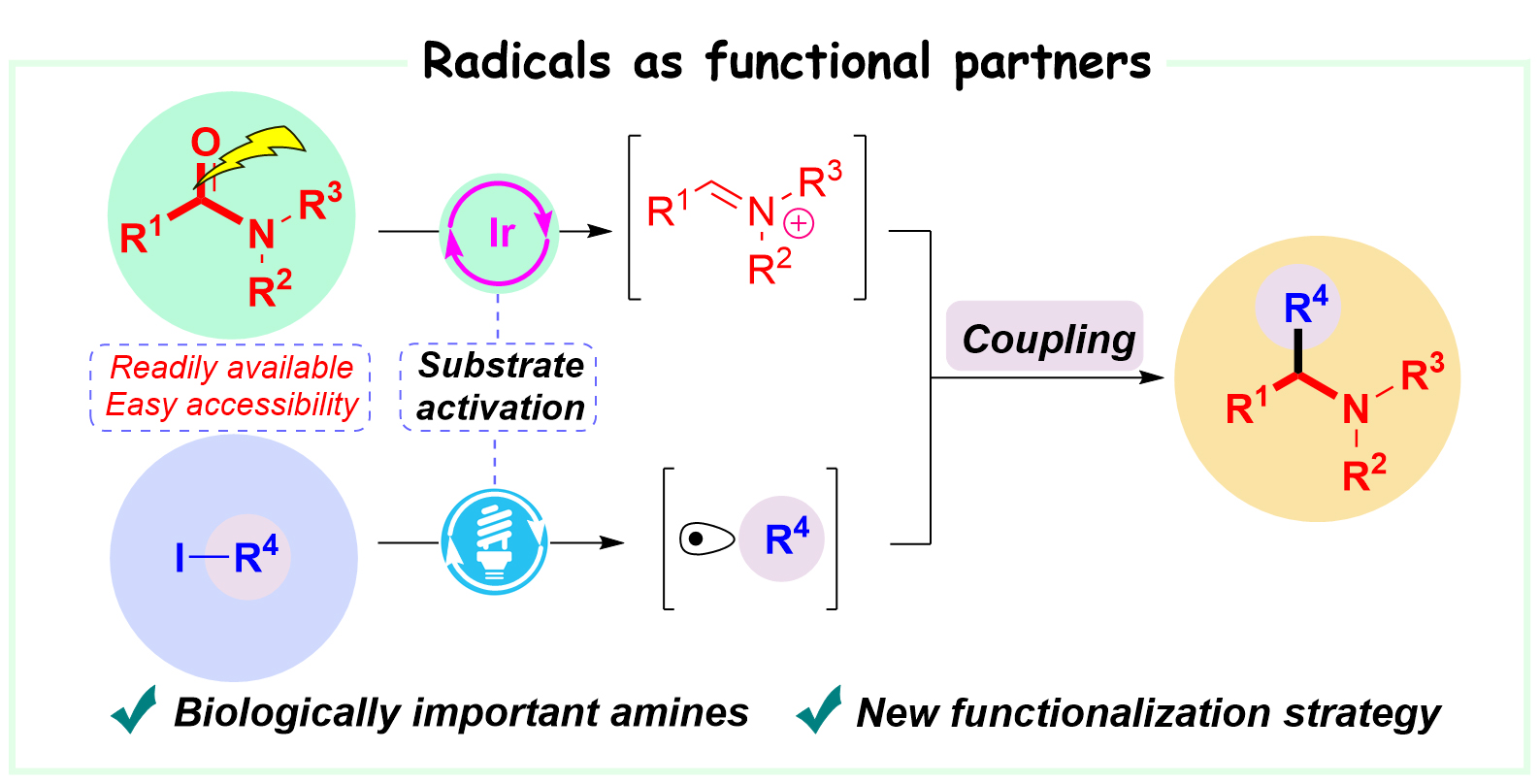 14. Zhao, F.#; Jiang, F.#; Wang, X.*, Sci. China Chem. 2022, 65, 2231–2237. Deoxygenative Alkylation of Tertiary Amides Using Alkyl Iodides under Visible Light(#contributed equally to this work). (Included in 2022 Emerging Investigator Issue of Science China Chemistry)