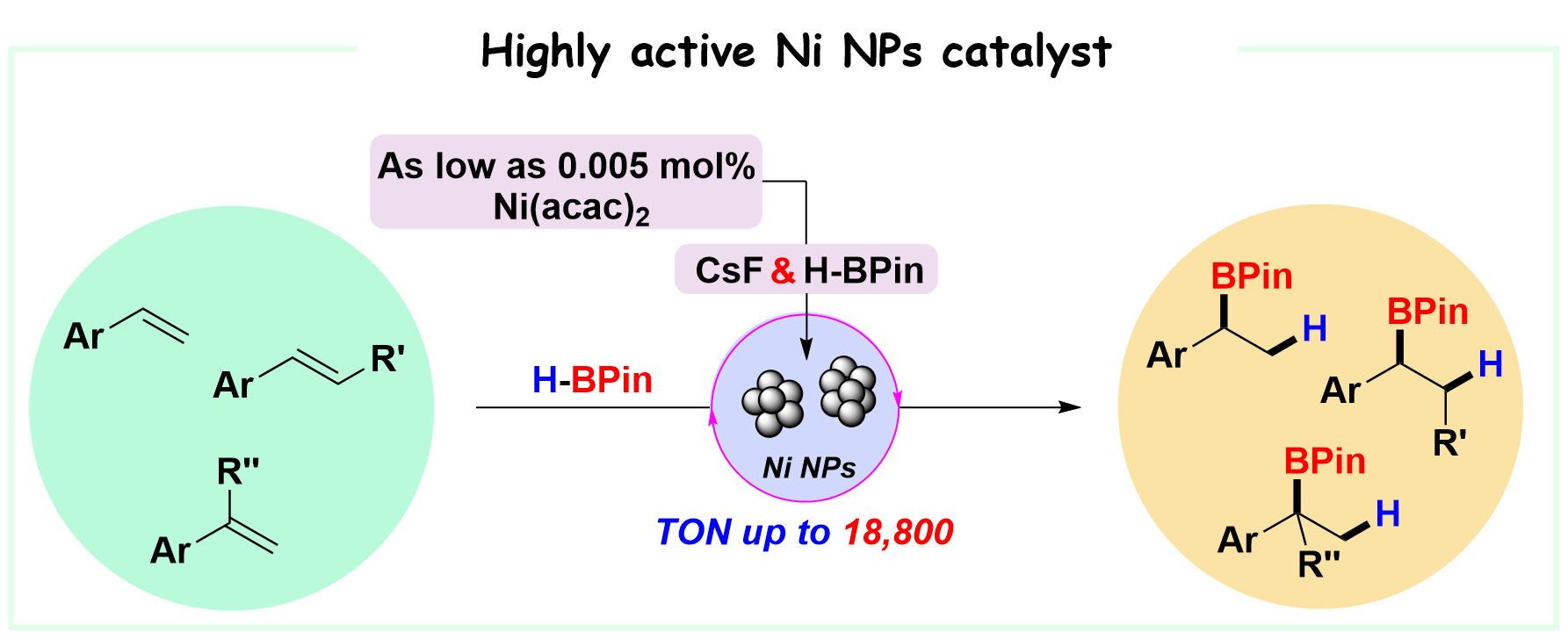 13. Liu, T.#; Li, C.#; Bai, J.; Zhang, P.*; Guo, Y.*; Wang,X.*, Chin. J. Chem. 2022, 40, 2203-2211. Markovnikov-Selective Hydroboration of Aryl Alkenes Enabled by a Simple Nickel Salt (#contributed equally to this work).
