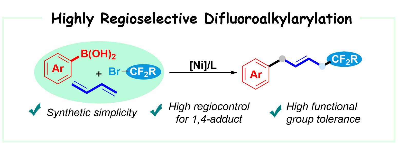 8. Ma, S.; Li, F.; Zhang, G.*; Shi, L.*; Wang, X.*, ACS Catal. 2021, 11, 14848-14853. Highly Regioselective Difluoroalkylarylationof Butadiene through a Nickel-Catalyzed Tandem Radical Process.