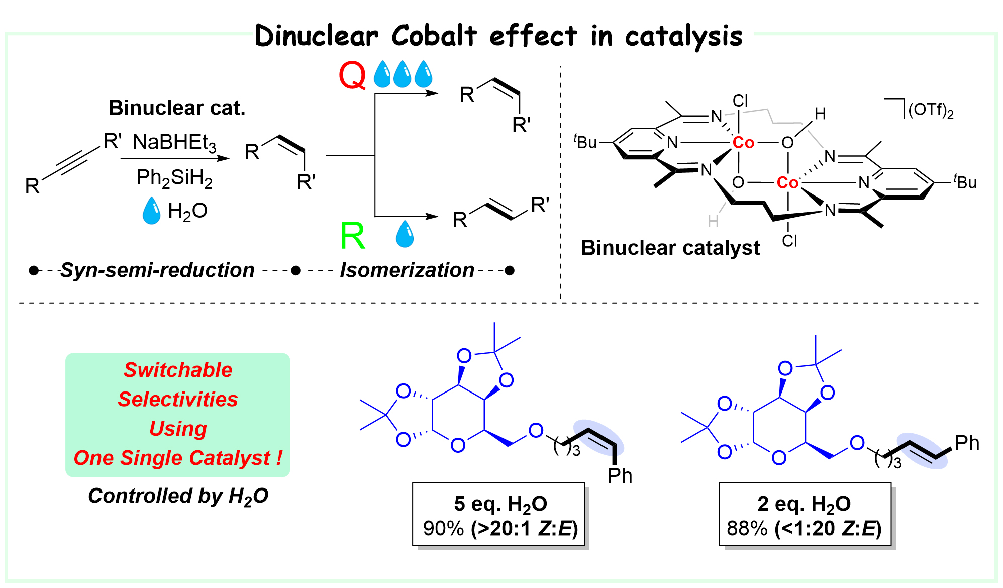 7. Chen, K.#; Zhu, H.#; Li, Y.; Peng, Q.*; Guo, Y.*; Wang, X.*, ACS Catal. 2021, 11, 13696-13705. Dinuclear Cobalt Complex-Catalyzed Stereodivergent Semireduction of Alkynes: Switchable Selectivities Controlled by H2O. (#contributed equally to this work).