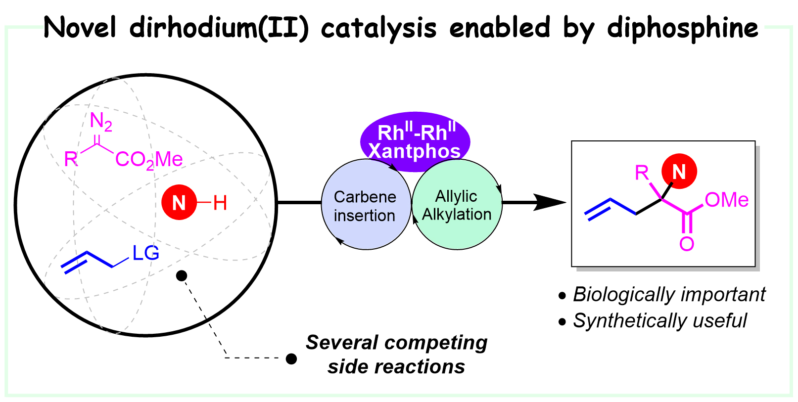 4. Lu, B.; Liang, X.; Zhang, J.; Wang, Z.; Peng, Q.*; Wang, X.*, J. Am. Chem. Soc. 2021, 143, 11799-11810. Dirhodium(II)/Xantphos-Catalyzed Relay Carbene Insertion and Allylic Alkylation Process: Reaction Development and Mechanistic Insights.