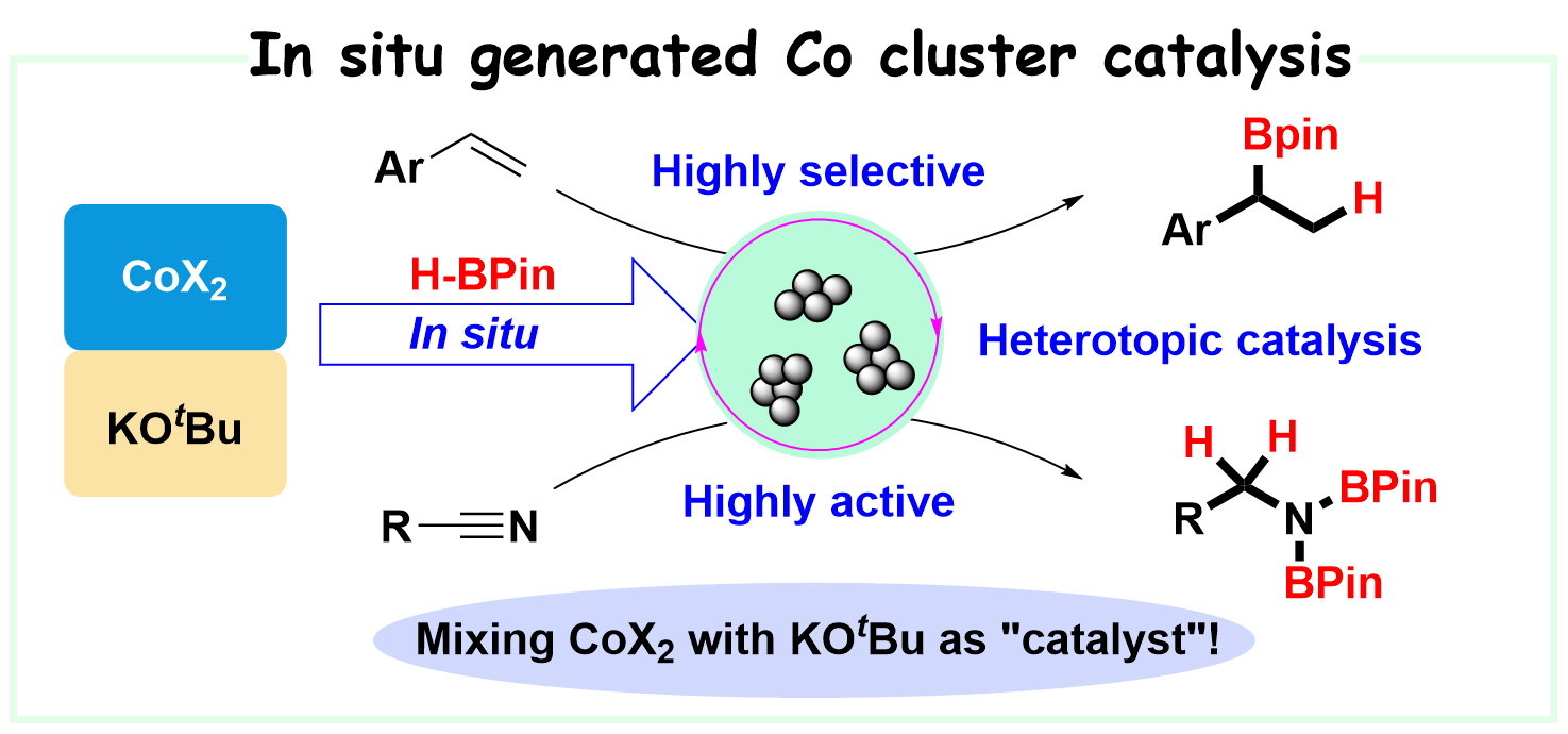 3. Li, C.; Song, S.; Li, Y.; Xu, C.; Luo, Q.; Guo, Y.*; Wang, X.*, Nat. Commun. 2021, 12, 3813-3820. Selective hydroboration of unsaturated bonds by an easily accessible heterotopic cobalt catalyst.