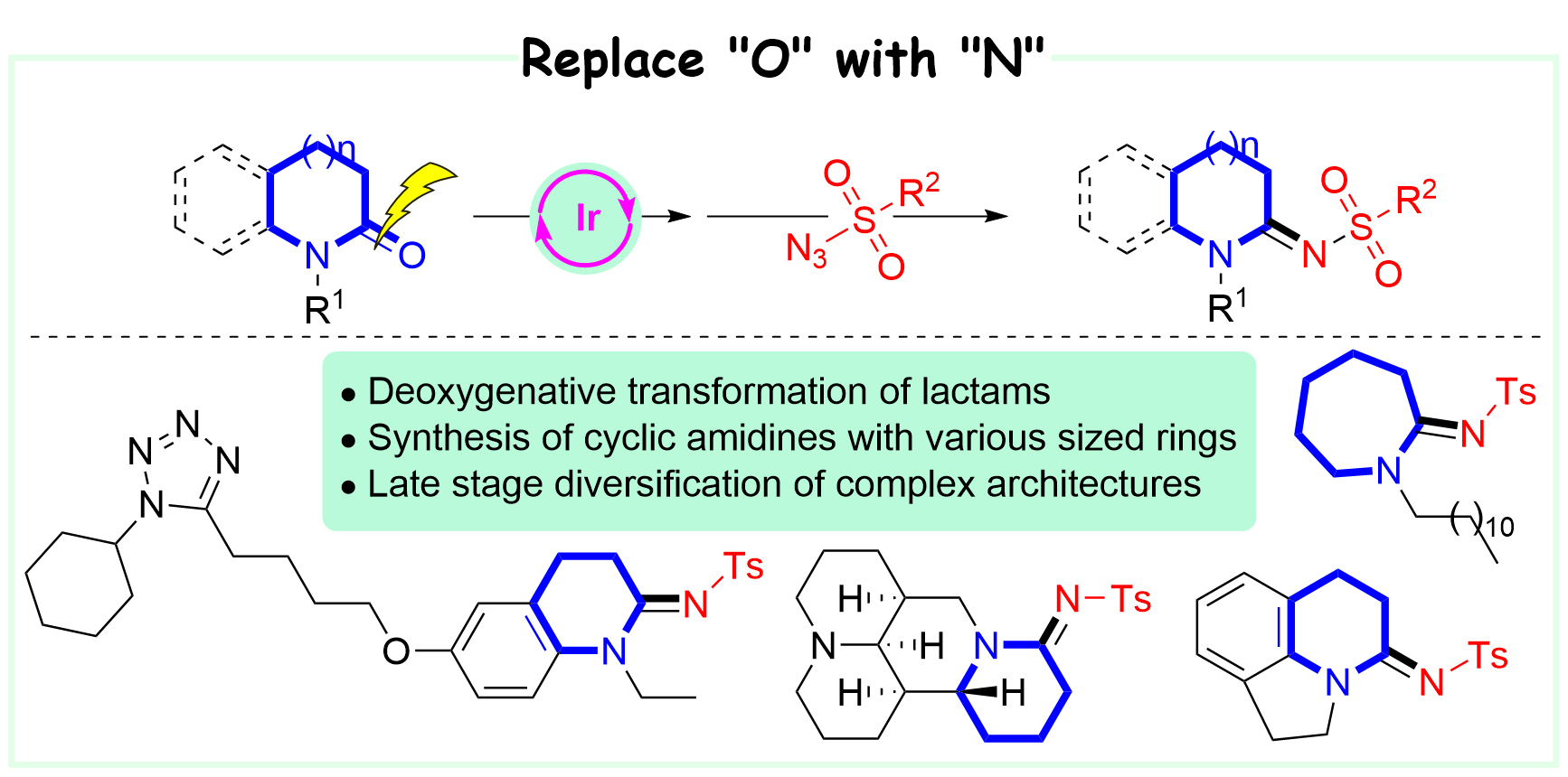 1. He, Y.; Wang, X.*, Org. Lett. 2021, 23, 225-230. Synthesis of Cyclic Amidines by Iridium-Catalyzed Deoxygenative Reduction of Lactams and Tandem Reaction with Sulfonyl Azides.