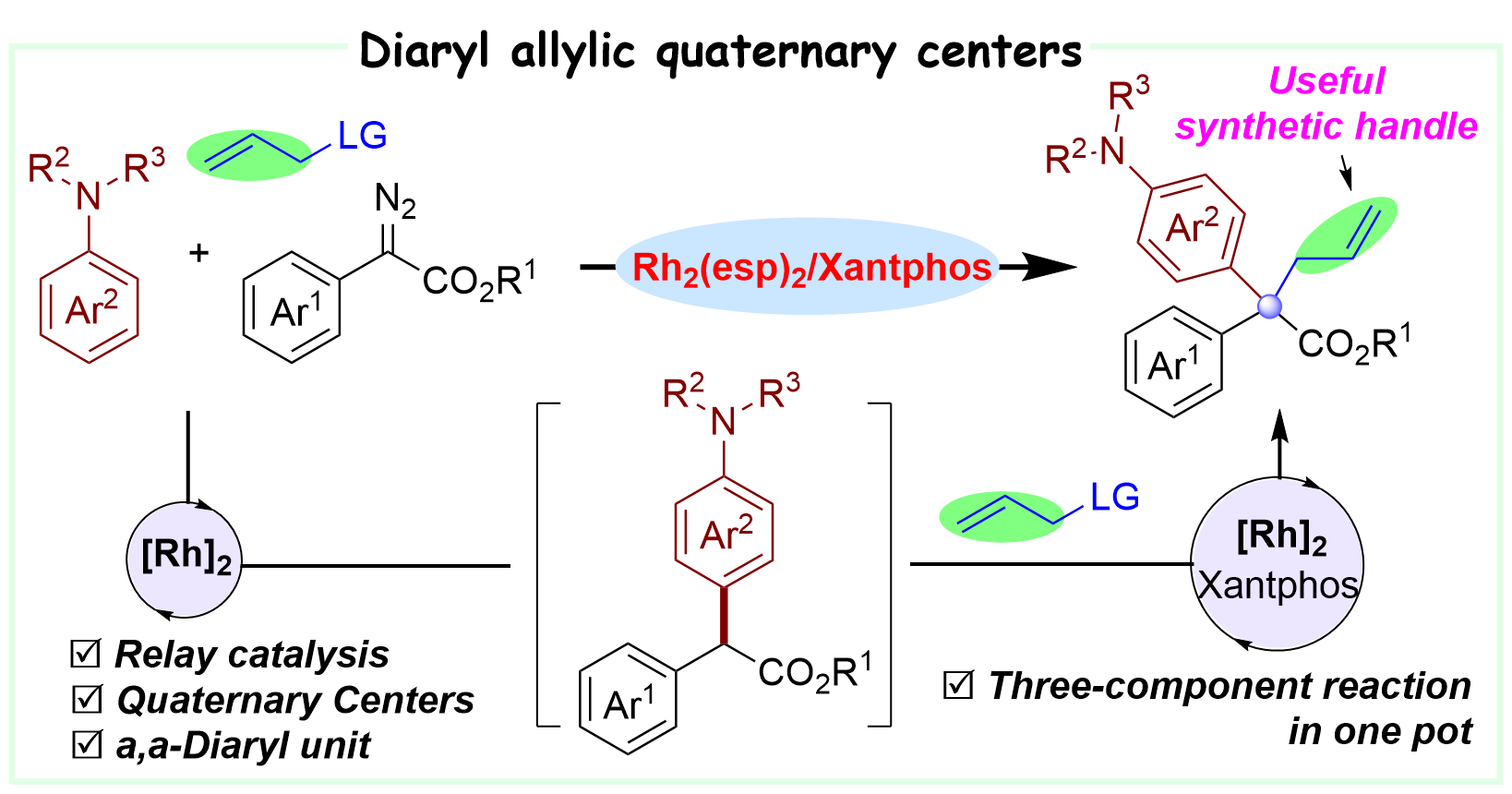 19. Ge, Z.; Lu, B.; Teng H.*; Wang, X.*, Chem. Eur. J. 2023, 29, e202202820. Efficient Synthesis of Diaryl Quaternary Centers by Rh(II)/Xantphos Catalyzed Relay C-H Functionalization and AllylicAlkylation. (Highlighted by Synfacts 2023, 19, 0038)