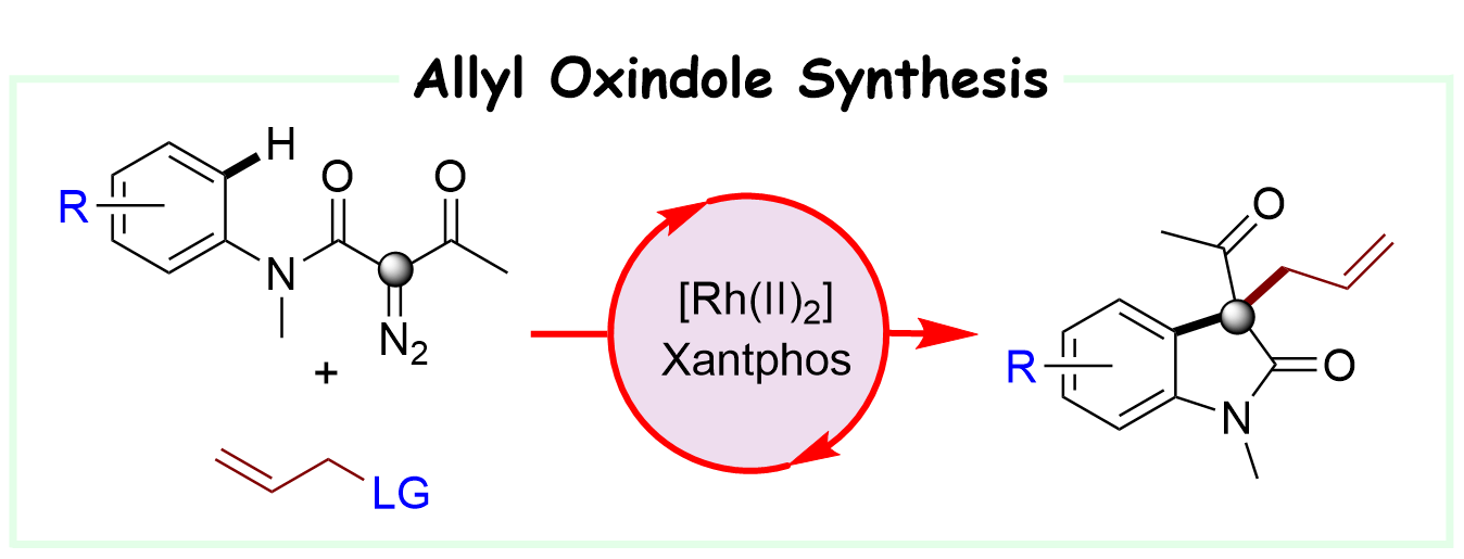 15. Li, F.; Lu, B.; Liu, Y.*; Wang, X.*, Chin. J. Org. Chem. 2022, 42, 3390–3397. Dirhodium/Xantphos-Catalyzed Tandem C-H Functionalization/Allylic Alkylation: Direct Access to 3-Acyl-3-Allyl Oxindoles Derivatives from N-Aryl-α-Diazo-β-Keto Amides.