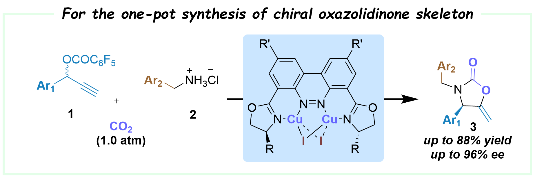 38. Lan, Y.; Liu, P.; Fang, Z.; Shao, L.; Cai, Q. L. *; Wang, X.* Org. Chem. Front. 2024, 11, 6319-6326. Well-defined chiral dinuclear copper-catalyzed tandem asymmetric propargylic amination–carboxylative cyclization sequence toward chiral 2-oxazolidinone derivatives.