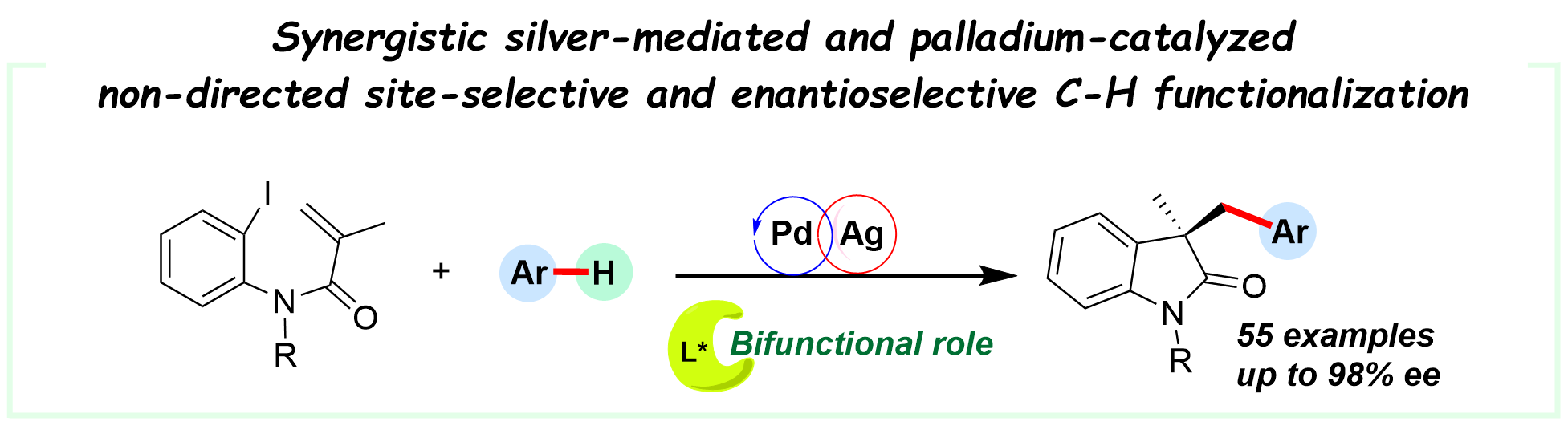 36. Yao, J.; Zhao, C.; Shao, L.; Huo, X.; Wang, X. *, Sci. China Chem. 2024, 67, 2710-2718. Synergistic Asymmetric Diarylation of Tethered Alkenes via C–H Functionalization of Simple (Hetero)Arenes.
