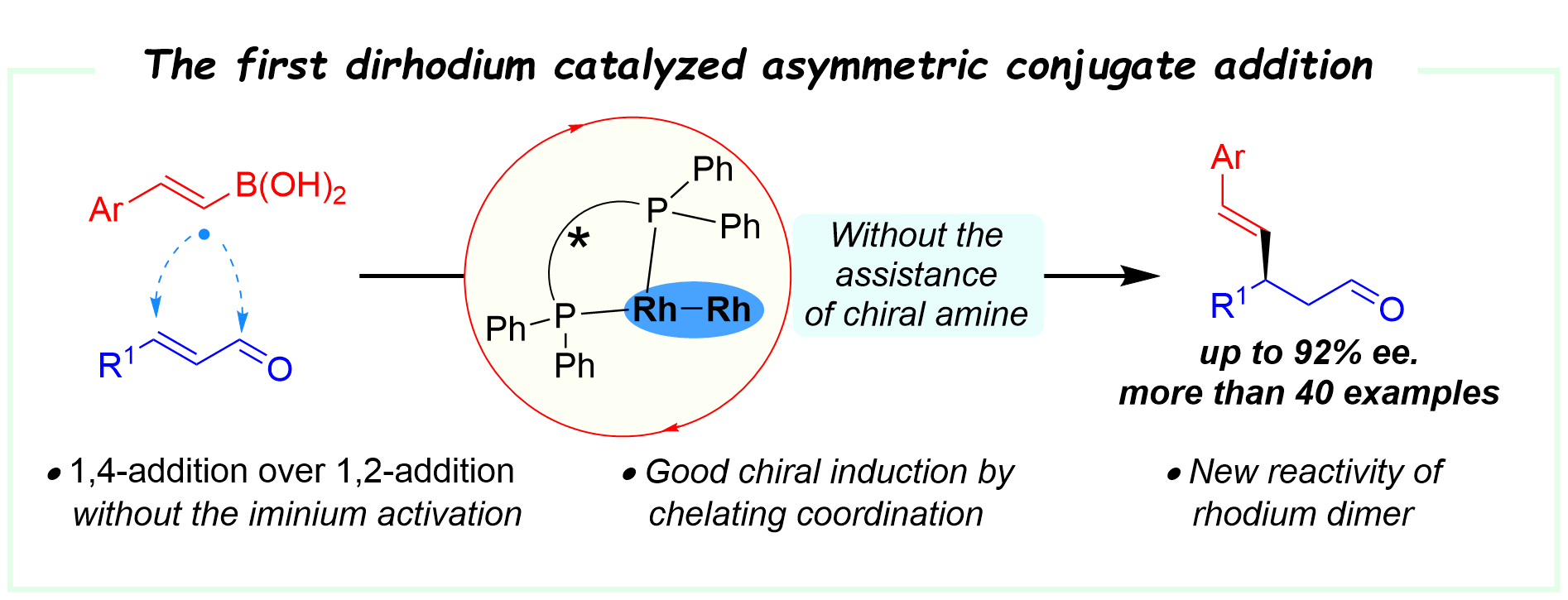 40. Xu, G.; Chen, H.; Wang, X.*, Science China Chemistry. 2025, 68, 3138-3146. Enantioselective β-Alkenylation of α,β-Unsaturated Aldehydes via Chiral Biphosphine Ligand Modified Dirhodium(II) Catalysis.