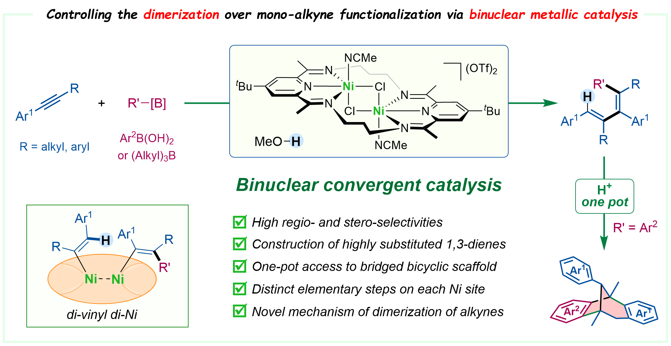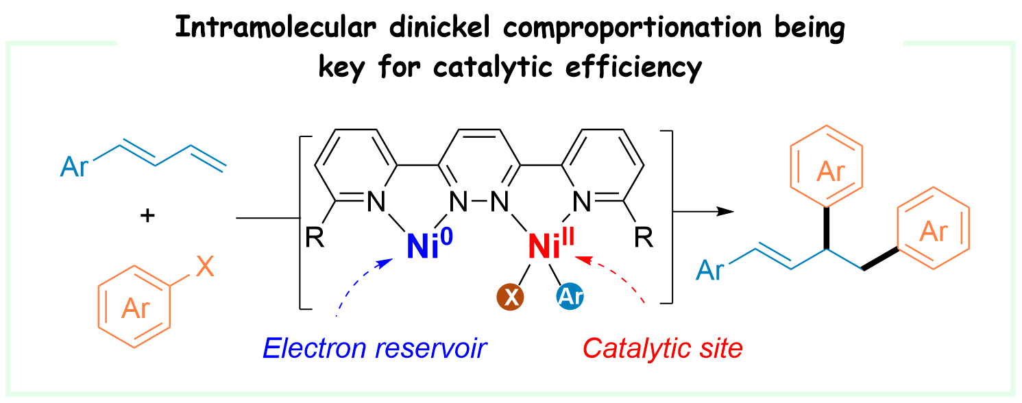 50. Qi, X.#; Lv, X.#; Gao, L.; Jiao, J.; Wang, M.*; Wang, X.*, Chin. Chem. Lett. 2025, doi.org/10.1016/j.cclet.2025.112189. Dinuclear Ni enabled reductive diarylation of dienes: Intramolecular comproportionation as the key mechanistic driver.
