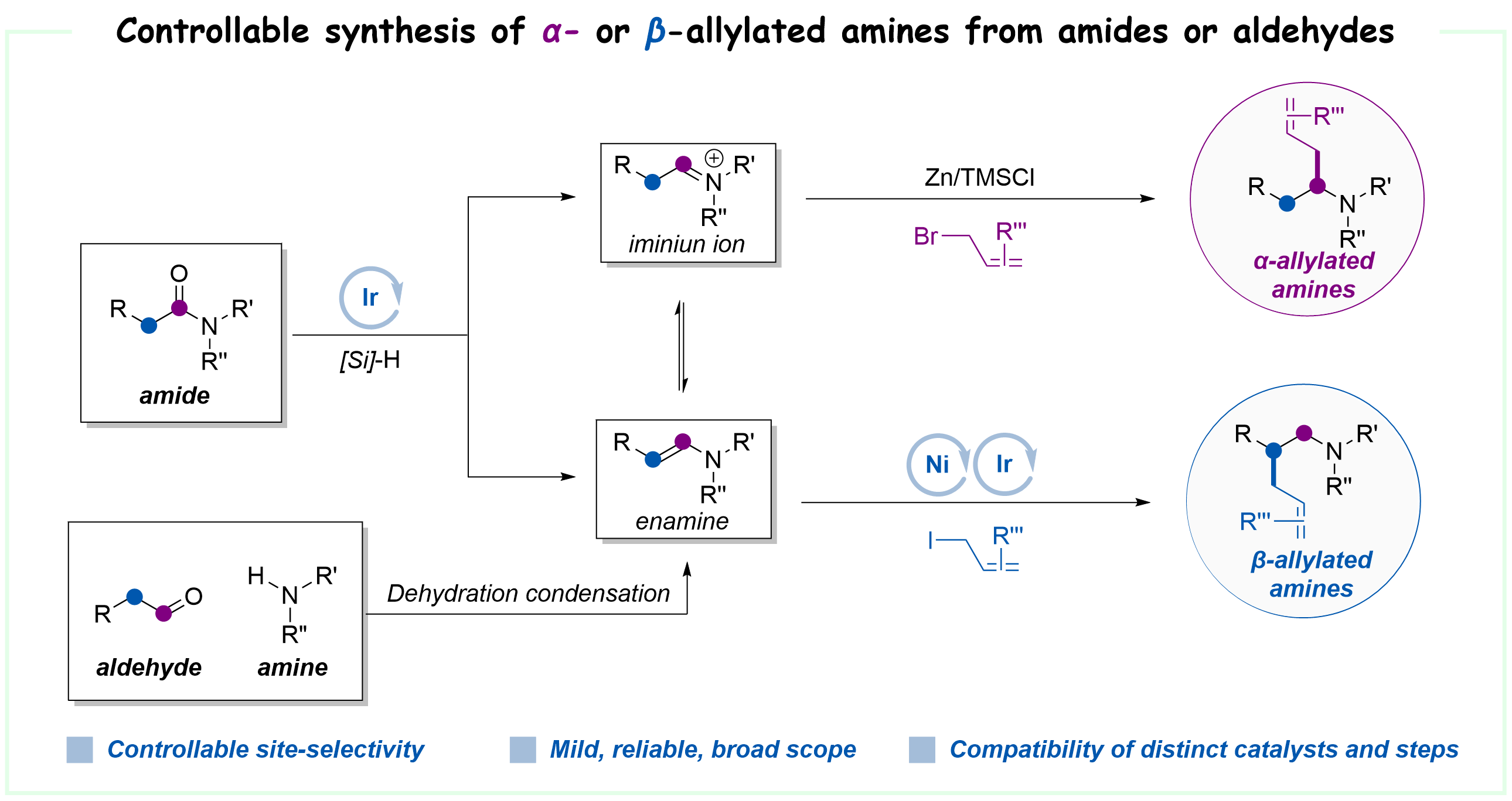 49. Tian, H.#; Gao, L.#; Jiao, J.; Wang, X.*, ACS Catal. 2025, 15, 19652–19664. Deoxygenative Allylation of Amides/Aldehydes via Interconvertible Intermediates: Switchable Access to α- or β-Allylated Alkylamines.